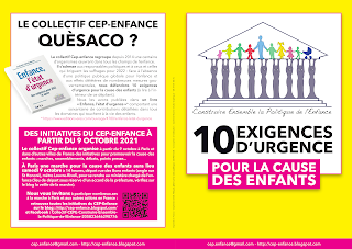 Le CEP-Enfance, avec l’ensemble des contributeurs de l’ouvrage, en a tiré une plate-forme synthétique : « 10 exigences d’urgence pour la cause des enfants ». Pour lire la plate-forme des « 10 exigences », cliquez ici ou sur l’image ci-dessous.